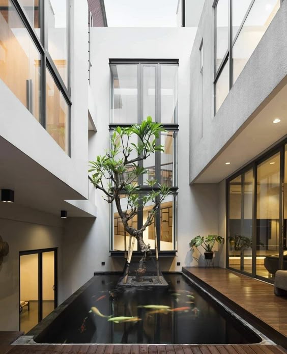 Kolam ikan minimalis ini juga terlihat sederhana tanpa banyak polesan sama sekali. Namun, penambahan platform kayu di sekelilingnya bisa menjadi nilai tambah yang efektif dan membuat suasana semakin hangat.