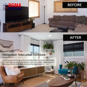 Cara pertama untuk mengubah nuansa ruangan adalah menata ulang furnitur. Kamu dapat mengubah posisi kursimu dan meletakkannya di dekat jendela atau kamu dapat menempatkan tempat tidurmu dalam posisi horizontal daripada vertikal untuk perubahan. Meski sederhana, cara ini membantu mengubah tampilan dan nuansa ruangan tanpa menghabiskan uang.