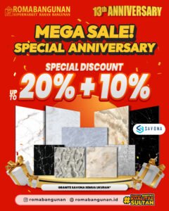 #RomaBangunan #AnniversaryRomaBangunan #GraniteSavona #PromoBahanBangunan #HargaRakyatKualitasSultan #DiskonAnniversary #MegaSaleRomaBangunan