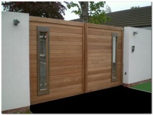 Konsep ini menggabungkan kayu polos, beton, dan kaca sebagai slot untuk “mengintip” ke luar rumah. Fitur ini tentu memberi keamanan lebih untuk melihat siapa yang ada di luar. Anda bisa menggunakan tempered glass untuk daya tahan yang lebih kuat. Desain pagar rumah ini sangat direkomendasikan untuk sahabat roma semua