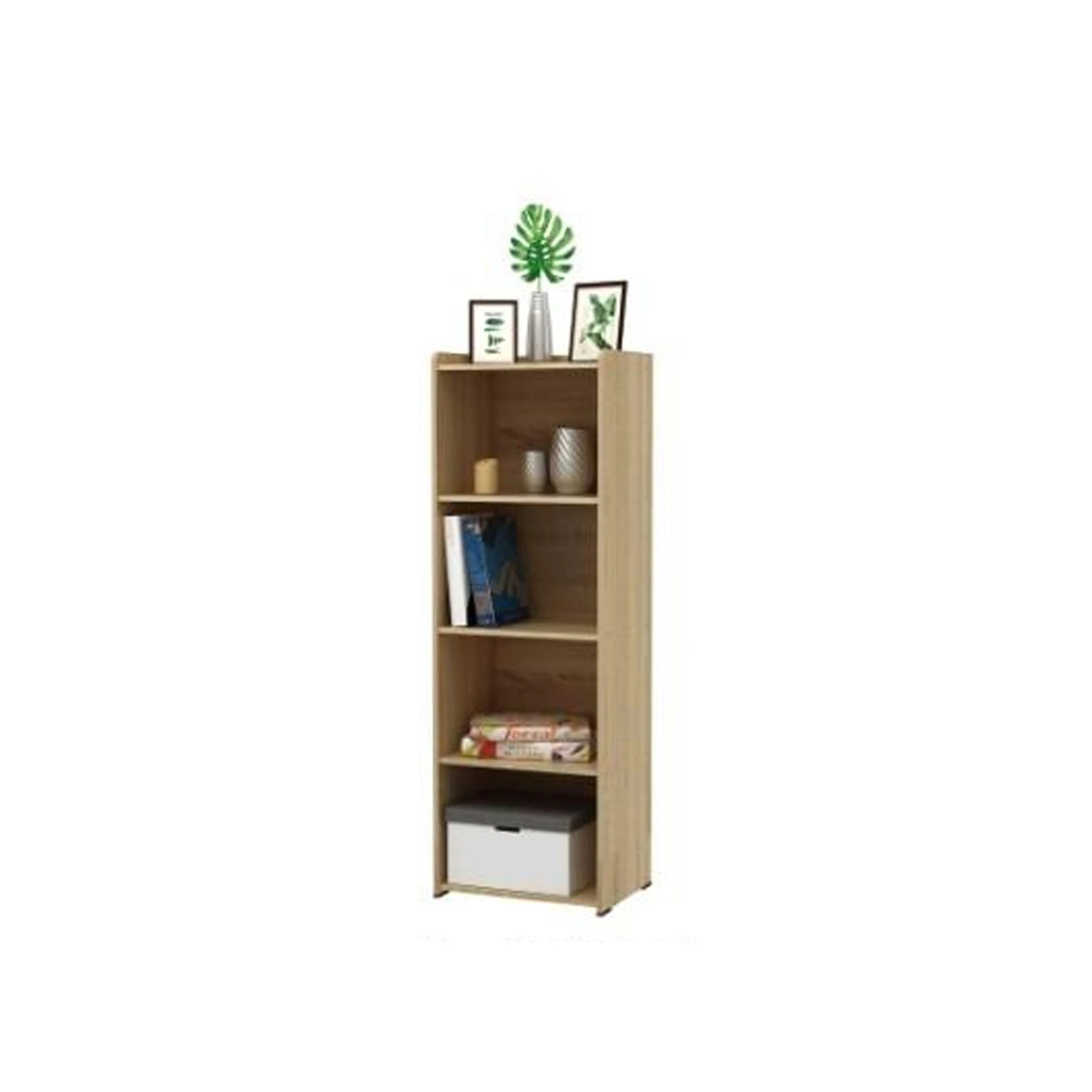 – Rak terbuka ini menggunakan warna sonoma oak yang clean dan minimalis